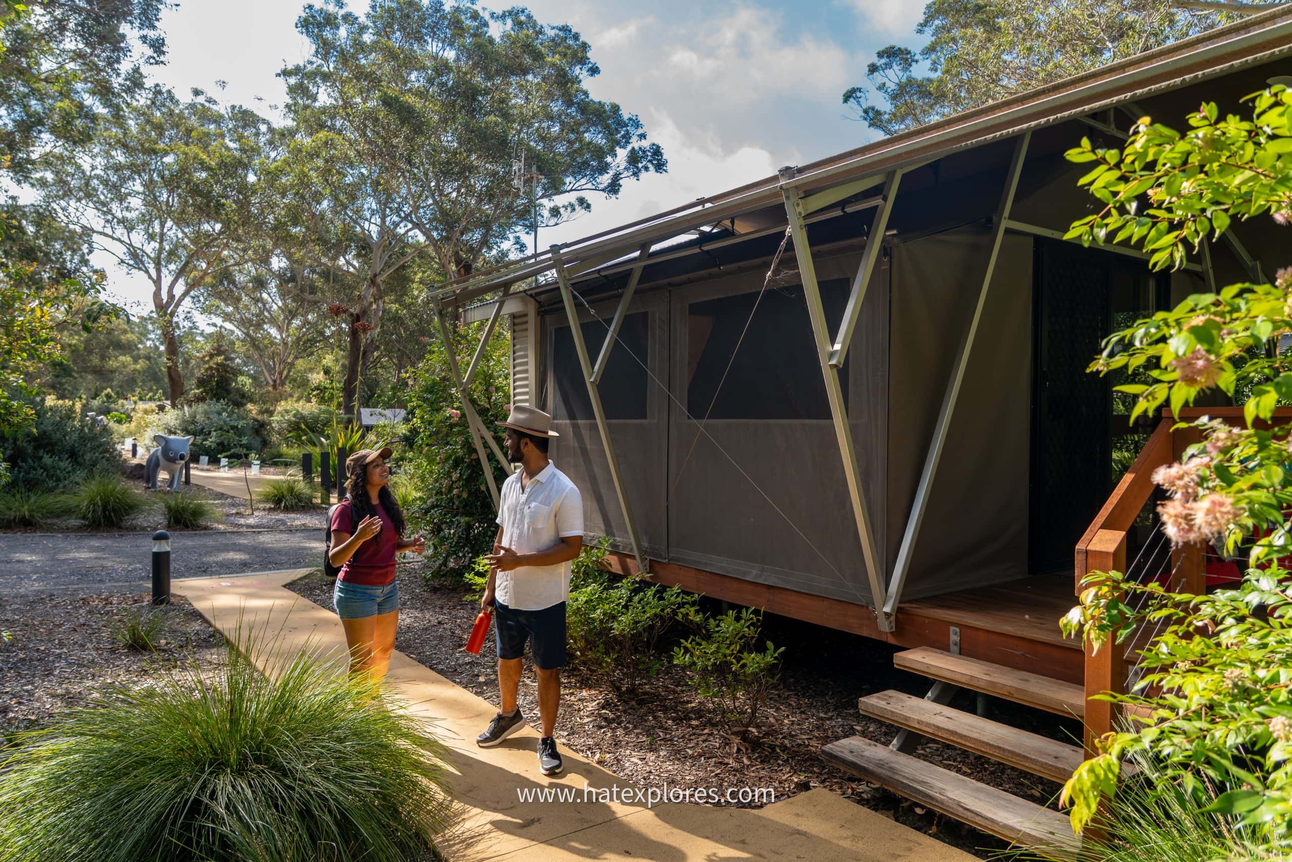 About the Stay: The Koala Sanctuary gives you a calm, nature-heavy stay with a spa and plenty of space to wander the property. You can spot koalas in the wild, and the glamping tents are comfortable with all the essentials provided, plus access to a separate kitchen area.